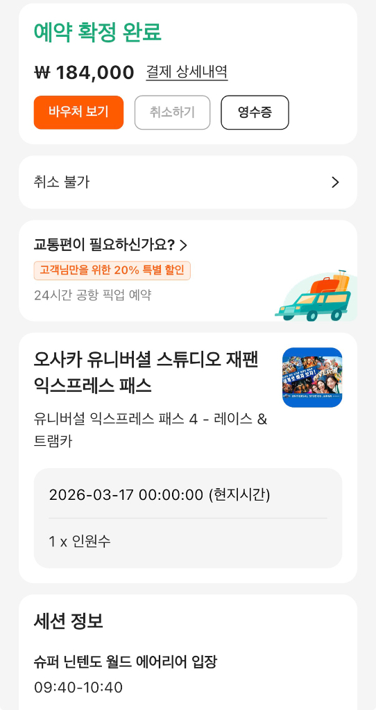 유니버셜 재팬 닌텐도 익스프레스4 3/17 판매합니다. 바우처로 보내드려요! 9:40~10:40 슈퍼 닌텐도 월드 9:40~10:10 마리오 카트 10:10~10:40 돈키콩 플라잉 다이노소어 해리포터 앤드 포비든 저니