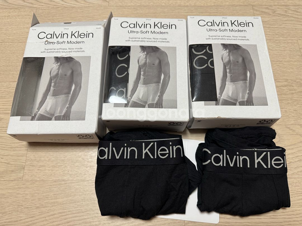 캘빈클라인 Ultra-Soft Modern 남성 트렁크 3개입 새 제품입니다 - 사이즈 M - 색상: 블랙 한박스 3장(모두 블랙) 들어있는 거 2개 판매합니다 한박스당 6만원이구요 박스당 미시착 새제품 한장 더 드려요 4장당 6만원이고 모두 구매하시면 8장 11만원입니다