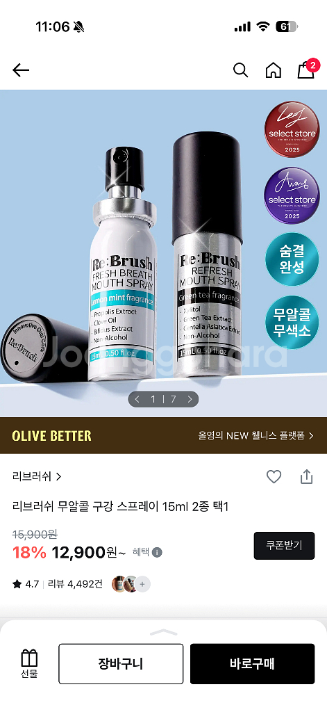 개인정보(거래정보)를 주고받는 행위는 사기에 노출될 수 있으므로 즉시 중고나라로 신고해 주세요리브러쉬 구강 스프레이 15ml입니다 - 무알콜이라 안심하고 사용할 수 있어요 - 상쾌한 구강 케어를 할 수 있습니다 - 휴대하기 좋은 사이즈입니다 유통기한은 2028년 11월, 12월까지입니다
