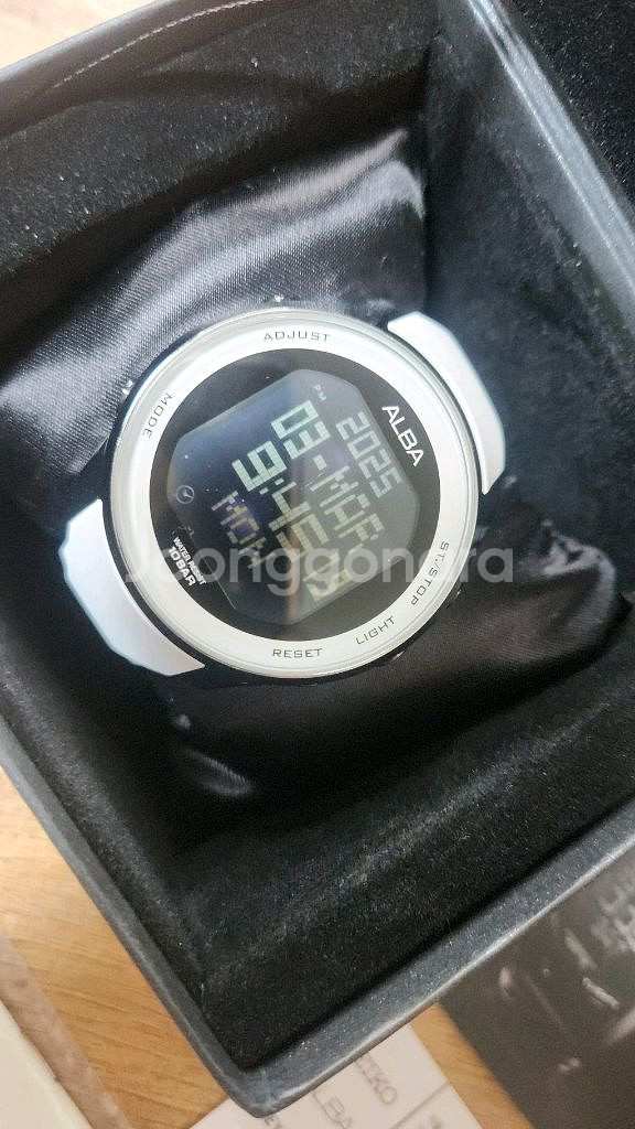 알바의 디지털시계. 정품입니다. "네오"라고도 부르는 녀석입니다. 판매당시 260,000원에 팔렸던 시계입니다. 둥글둥글한 모양세와 큼직한 폰트덕에 보는이로 하여금 시원스런 시안성을 선사합니다. 지금은 단종되어 돈이 있어도 구할 수 없는 레어하고 귀한 녀석입니다. 알바 네오는 보는 각도에 따라 폰트의 색상이 조금씩 변하는 컬러풀함을 보여줍니다. 무지개 느낌인데요~ 단색으로 표현되는 일반 디지털 시계들과는 다른 모습입니다. 네오는 디지털 시계 답게 많은 기능을 갖고있는데요~ 월드타임, 스탑월치, 타이머, 알람, 라이트 등등의 기능들로 사용자의 필요한 상황에 맞게 작동이 가능합니다. 밴드는 새밴드 체결 후 보관중입니다. 말랑말랑하니 몇년은 문제 없이 착용 가능합니다. 베터리는 빵빵하지 않아 라이트가 잘 안들어옵니다. 사용하실때까지 사용하시다 교체하시면 됩니다. 손목시계/남성용/소재: 우레탄, 레진/기압방수: 10ATM/디지털/글라스: 미네랄/무브먼트: 쿼츠/월드타임/스톱워치/알람/캘린더/케이스: 47mm/알람 사용감 있으며 사진 클릭하시어 꼼꼼히 확인하세요. 레어 시계 놓치지 마세요!!! ------------------------------ notice ! * 판매자의 물품보기 눌러 다른 제품도 봐주세요! * 사진은 직찍이며 어떠한 보정도 안합니다 * 실측 사이즈를 참고하세요. * 중고물품의 특성상 환불 되지않으니 이점 양해 부탁드립니다 .