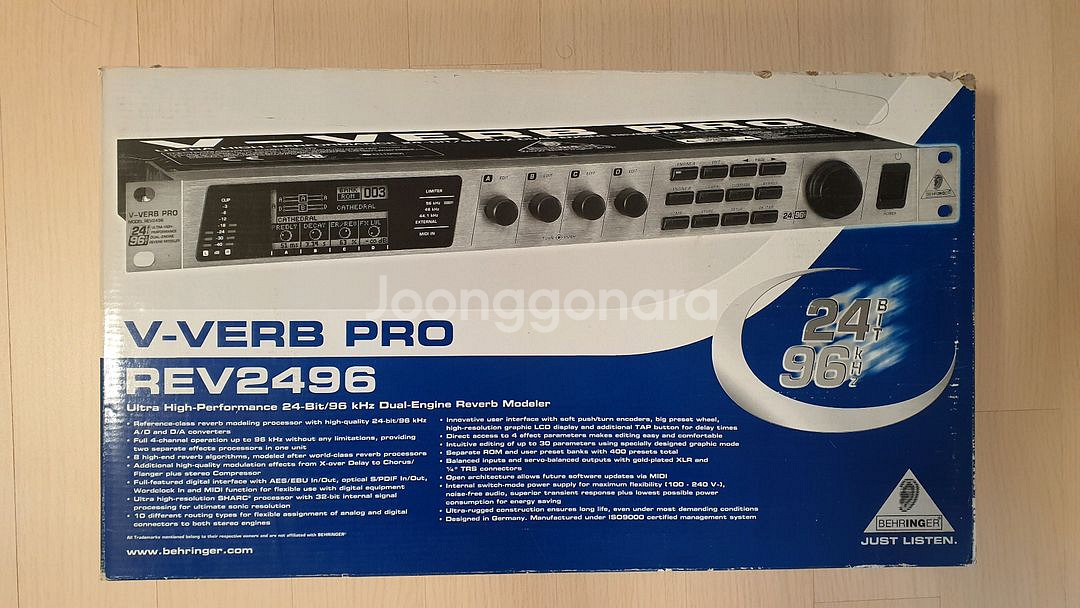 베링거 리버브 rev2496 팝니다. 단종된지 오래된 모델이지만, 리버브 1티어인 렉시콘 사의 리버브 엔진을 모방해서 만들었다는 썰이 돌았었고, 그래서 소송 문제 때문에 단종이 빨리 되었던 모델로 알고 있습니다. 성능은 렉시콘 리버브와 견줄만하다고 평이 많습니다. (해외 사용자들 평가) 유튜브에도 rev2496 이라고 검색하면 해외 사용자의 리뷰 영상이 있습니다. 듀얼 엔진이라서 리버브 효과 2가지를 동시에 넣을 수 있는걸로 알고 있습니다. 제품은 박스 입구 부분만 한 번 열었다가 다시 닫아놓은 상태입니다. 당연히 미사용 새제품이구요. (박스 상태는 좋지 않지만) 현재 단종되어서 새제품 못구하는 상태이며 쇼핑몰에도 전부 품절로 되어있습니다. ---------------------------------------- 하이파이 환경에서 잔향의 느낌을 추가하기 위해 앰프 이 모델, 저 모델 바꿈질하고, 스피커 이 모델, 저 모델 바꿈질 하는 방법보다 리버브 기기를 사용하면 훨씬 쉽게 잔향 느낌을 추가할 수 있다는 글을 어디서 읽고 언젠가 사용하리라 생각하고 예전에 구입해놓았던 기기입니다. ---------------------------------------- 안심결제도 가능하며, 안심결제 시에는 수수료만큼(1%인 4,400원) 추가로 받고자 합니다. 채팅 먼저 주세요. 깔끔한 거래 원합니다. 감사합니다.