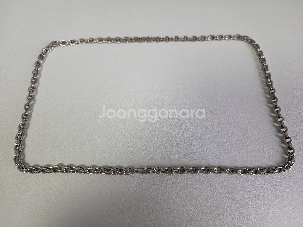 925 실버로 스타일 제작된 두꺼운 체인 목걸이예요. 고급스러운 디자인과 견고한 링크가 특징이며, 상태도 양호합니다. 써지컬스틸 소재입니다