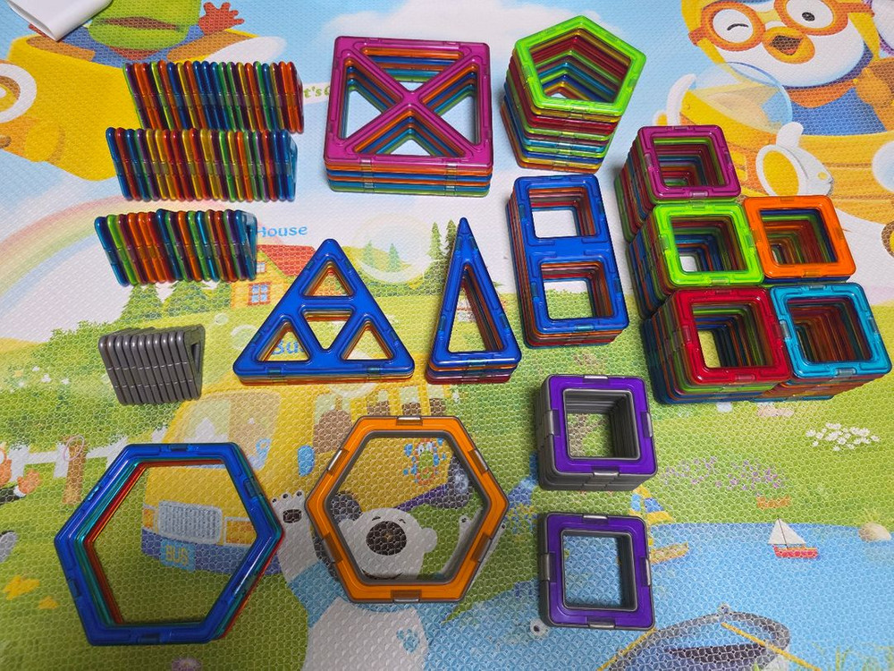 자석블럭 170개 -180개 , 보관통 일괄 택배비 포함 가격 25000원입니다 - 여러 가지 도형이 있어서 다양한 모양 만들 수 있어서 재미있게 놀 수 있어요 - 소근육 발달에도 좋아요 - 반품,불발,네고 xxxxxx