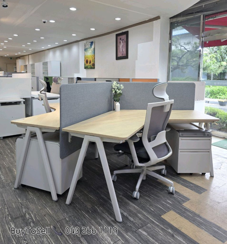 퍼시스 책상 enAble Series ▫️인에이블 120도 데스크 FDD588N 사이즈 : 2045 × 1085 × 720 색상 : CC ▫️인에이블 전면 스크린 FDF012JN 사이즈 : 1186 × 136 × 715 색상 : 061 ( 내추럴 그레이 ) ▫️ 엑스페이스 2단 이동서랍 GPN0302 사이즈 : 400 × 580 × 560 색상 : WW ✔️ 데스크 우측 상부에 멀티탭 트레이를 통해 전원 연결 및 제거 편리 ✔️ 상판 모서리를 라운드 디자인하여 부드럽고 편안한 오피스 분위기 연출 ✔️ UV코팅 마감 상판으로 쉽게 변형 , 탈색 되지 않고 습기에 강함 ✔️ 가장 편안한 각도인 120도 상판 데스크로 업무 공간이 넓고 연결배치시 창의적이고 다양한 레이아웃 연출 ✔️ 상판의 하중을 견고히 견딜수 있는 A형의 사선형 다리 디자인 ✔️ 개인 프라이버시를 보호하고 외부시선을 차단하며 자석을 이용한 메모 부착 가능하며 스크린 서포터에 배선공간을 확보하여 정돈된 배선 처리 가능한 전면 스크린 ✔️ 서랍 상부의 전,후면을 곡면스타일로 처리하여 깔끔하고 세련된 디자인 ✔️ 서랍 앞쪽 상단에 반투명 소재의 회전식 덮개를 여닫는 방식으로 필기구등 물품보관 가능 상부면 전체에 일정깊이의 단을 주어 서류등 추가 공간활용의 편리성 제공 💕 인에이블 120도 책상( 3 ) + 인에이블 전면스크린( 3 ) + 엑스페이스 2단 이동서랍( 3 ) SET ( 3인 구성 )중고 ✔️ 신품가 350만원 제품 !! ✔️ 가격 : 110만원 ( VAT 포함 ) 대량 구매가능 !! ✔️ 의자 별도 구매 가능 !! 대량 구매 가능 !! CHA4300WAH ( 좌판패브릭) 풀옵션 242,000원 CHN6100WAH ( 좌판에어메쉬) 풀옵션 253,000원(VAT포함) 청주인근지역 구매금액 55만원이상 무료배송설치 전국 용달 및 배송설치 가능 010 2886 3030 전화문의 주세요 남이외천길 50 바이투셀(BUYTOSELL )