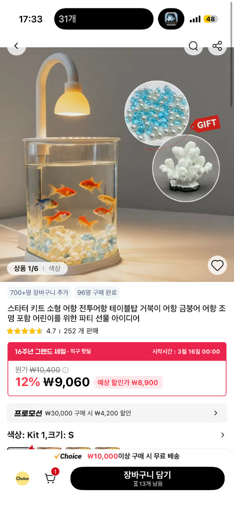 ONKA 미니 어항입니다 - LED 무드등 기능이 있어서 밤에도 예뻐요 - 크기는 11.8cm x 28cm 정도입니다 - 장식이나 물고기는아니고 어항만 들어있습니다. - 뚜껑을 열지 않고도 쉽게 먹이를 줄 수 있습니다 -베타나 마리모같은거 키우시는분 쓰시기에 너무예뻐요. 수량 조절안하고사는바람에 초과구매해서 남은거 판매해요ㅜ