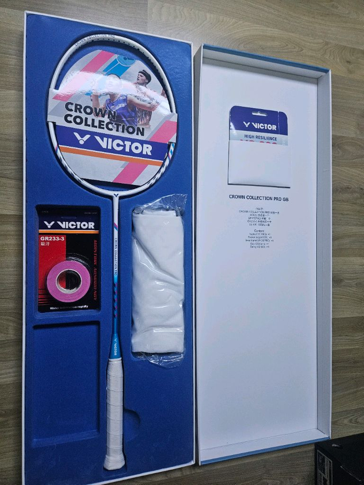 박터 크라운컬렉션 배드민턴 라켓 새제품이에요. 박스와 구성품 모두 새상품이고 손목밴드는 사용해서 그것만 빠져 있습니다 사진참고하시면 되세요^^