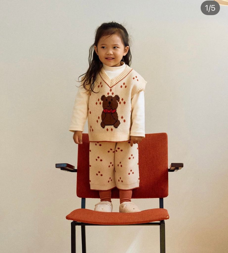 사이즈 5호 3회정도 착용, 작은 얼룩 몇 군데 있어요 상태는 좋은 편이나 사진으로 확인해주세요 여름 빼고는 다 착용 가능할 것 같아요 까칠까칠한 니트 재질 아니에요, 부드러워요! 바지 허리 20cm, 전체길이 44 상의 전체길이 37cm 네고, 환불❌ 택배비별도, cu반택가능 +2000