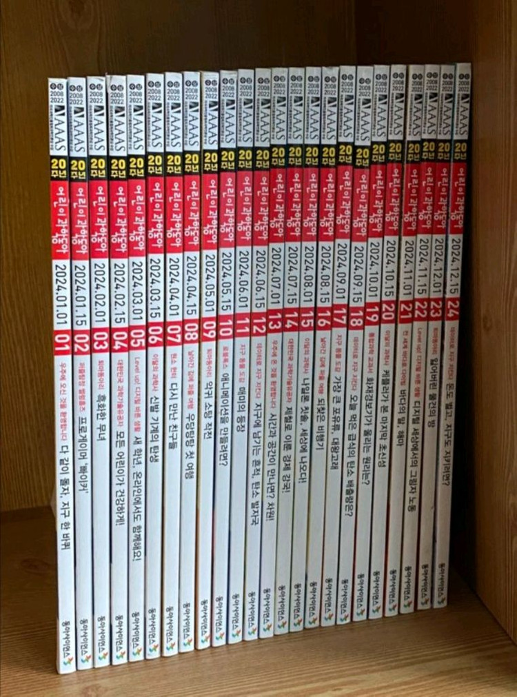 어린이과학동아 2024년도 24권 전권 1~ 24권 총 24권입니다~ 상태좋은편이예요~ 그래도 잡지특성상 사용감있을수는 있으니 예민맘은 패스해주세요^^; 속지 깨끗해요 <어린이 과학동아 2023년도 20권> 일련번호순아니라 권수로 총20권 상태양호 좋은편이나, 한권겉표지하단모서리부분헤짐으로, 약간테이핑있습니다. (속지괜찮음) 그외속지 낙서 찢어짐 없어요 (한권만맨뒤 낱말퀴즈문제풀이 흔적있음) 모두다해서 총44권입니다~! 잡지특성상 예민하신분은 패스해주세요^^; 채팅주세요^^