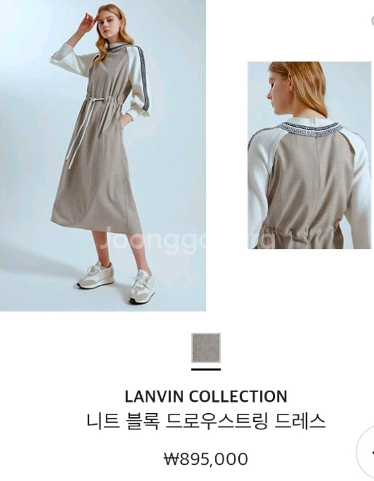 한섬(랑방) 2회착용 거의 새상품 니트 블록 드로우스트링 롱 원피스 한섬 정품 제품이며 니트 배색 디자인과 허리 스트링 디테일이 있어 라인이 예쁘게 잡히는 고급스러운 원피스입니다. 니트 소매와 부드러운 소재의 스커트가 믹스된 디자인이라 봄, 가을 단독 착용하기 좋고 세련된 분위기의 롱 원피스입니다. 모델 착용 사진 참고하시면 핏 확인 가능합니다. ▪ 브랜드 : 랑방 컬렉션 (LANVIN COLLECTION) ▪ 제품명 : 니트 블록 드로우스트링 ▪ 정가 : 895,000원 ▪ 사이즈 : 82 (55 추천) 총기장 124센티 ▪ 색상 : 오트밀 ▪ 상태 : 거의 새상품 (착용 거의 없음) 허리 스트링으로 핏 조절 가능하고 니트 배색 디자인이라 고급스럽고 세련된 스타일입니다. 직거래 / 택배 가능 반품/환불 불능