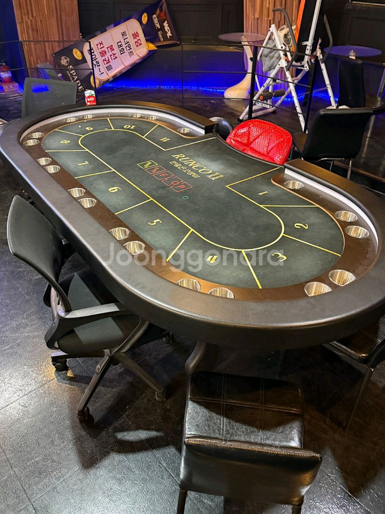 가게 1개 차리실 수 있는 양 정리합니다. 일괄판매 하려 합니다. O1O 956O-4236 문자 부탁드립니다. 홀덤테이블 2개 - 대당 400,000 블랙잭테이블 1개 - 300,000 (천갈이 하면 홀덤테이블이랑 규격 같음) 홀덤전용카드50개(토너 사이즈) - 덱당 5,000 빨간칩 435개 - 개당 100원 검정 231개 - 개당 100원 회색 287개 - 개당 100원 떡칩 30개 - 개당 1,000원 일괄 1,452,200원에 정리 일괄 쿨거시 140에 날립니다. 새로 주문 넣으시면 테이블 1대 값으로 3대 가져가시는거니 충분히 메리트 있다 생각합니다. 천갈이 하셔서 쓰셔도 되고 팔걸이도 갈이하면 그냥 새테이블 됩니다. 용달비도 싸게 비교해드려요. 전 지역 보내드립니다.(구매자 부담) 조금 더 아끼시려다 손해보지 마시고 저렴하게 테이블 가져가셔요~