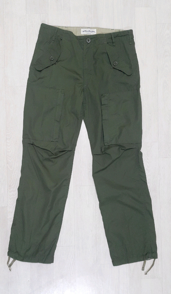 *구매문의 주시면, 협의후 택배 거래하겠습니다. *찔러보기 힘빠지니 구입 하실분만 문의 바랍니다. ^^; *이체거래는 먼저 입금 하신분께 판매되니, 오해 없으시길 바랍니다~ *단순변심및 사이즈로 인한 환불 불가하오니 확인 후 구매 바랍니다. *우체국택배(일반택배), GS반값택배는 찾아가실 GS25 편의점명 꼭 알려주셔요~ 스펠바운드 SPELLBOUND 일본 기능성 테크웨어 워크팬츠 카고바지 (진카키) - 허리 31~33인치 추천드리며, 대략 치수는 허리단면 41.5cm, 총기장 105cm 정도 입니다. - 사진에서 보듯 새옷처럼 전체 깨끗하며, 원단 하자(찢김, 구멍) 없이 세탁후 보관중입니다. - YKK지퍼, 주머니(허리2, 엉덩이2, 허벅지2), 밑단 조임줄, 허리뒤 사이즈 조절 단추있습니다. - 밑단 조임줄로 핏 조정 가능합니다. - 얇고 내구성 좋은 고급원단 (폴리에스테리+명주/비단)으로 봄, 가을~ 초여름 까지 괜찮을것 같습니다. - 작업복및 일상 패션용으로도 멋진 바지며, 밀리터리 룩으로 입어도 좋을것 같습니다.