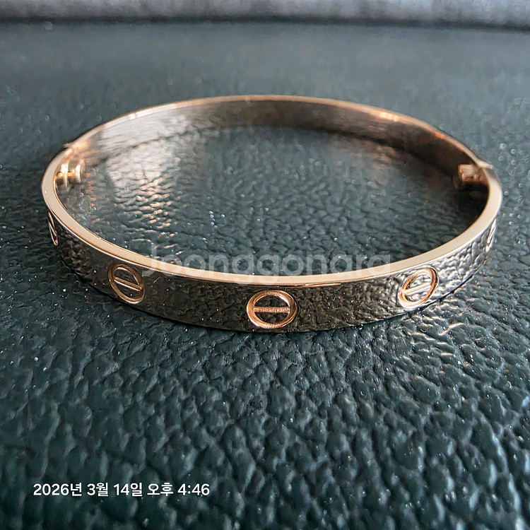 * 상품명: 18k 금팔찌 * ;무게: 6.88돈(저울에 따라 미세한 차이 있을수 있습니다) * 제품상태: 10점만점에 9.5점 수준으로 상태깨끗합니다 - 사진에 기스처럼 보이는건 먼지나 빛반사 때문입니다 ​* 사이즈: 팔찌안쪽둘레길이 약 17cm,팔찌폭 7mm - 구매전 사이즈 확인 꼭 해주세요.구매후 사이즈 안 맞는다고 반품 안 됩니다 18k 금 아닐시 200% 책임보상 가까운 금방 가시면 무료로 3분내로 진품여부,무게 감정해 줍니다 구매후 반품및 환불 불가합니다. 네고는 정중히 사양합니다(네고 문의 답장하지 않습니다) 나사 돌릴 드라이버 미리 준비하세요 경북 포항시