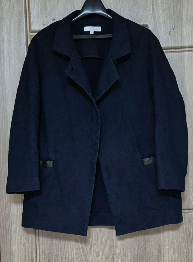사용감 있지만 상태양호함 네이비 린넨 혼방소재(두꺼운 린넨소재) 넥라인+포켓은 양가죽 입니다 넥라인 깃을 세워서 입으셔도 예쁨 팔은 8부 노버튼 오픈형 자켓 세미 케쥬얼이나 포멀한룩에 굿~ 55싸이즈 추천 가슴49 길이65 반품 환불 교환 불가 입금순 판매