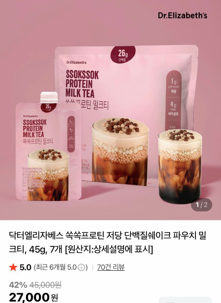 닥터엘리자베스 쏙쏙프로틴 밀크티 7개입(단백26g,당1g)