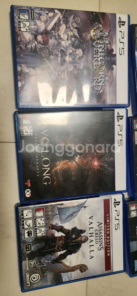 PS5용 게임 3종 판매해요. 케이스 상태 양호하고 디스크도 깨끗한 편이에요. - 유니콘 오버로드: 22000원 - 와룡 폴른 다이너스티: 22000원 - 어쌔신 크리드 발할라 리미티드 에디션 : 20000원 제품은 다 깨끗이사용하여 외관상 문제없으며, 구동잘됩니다. 택배비 별도입니다.