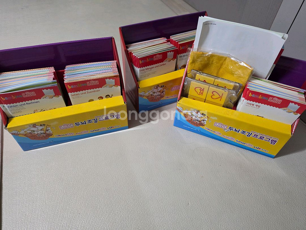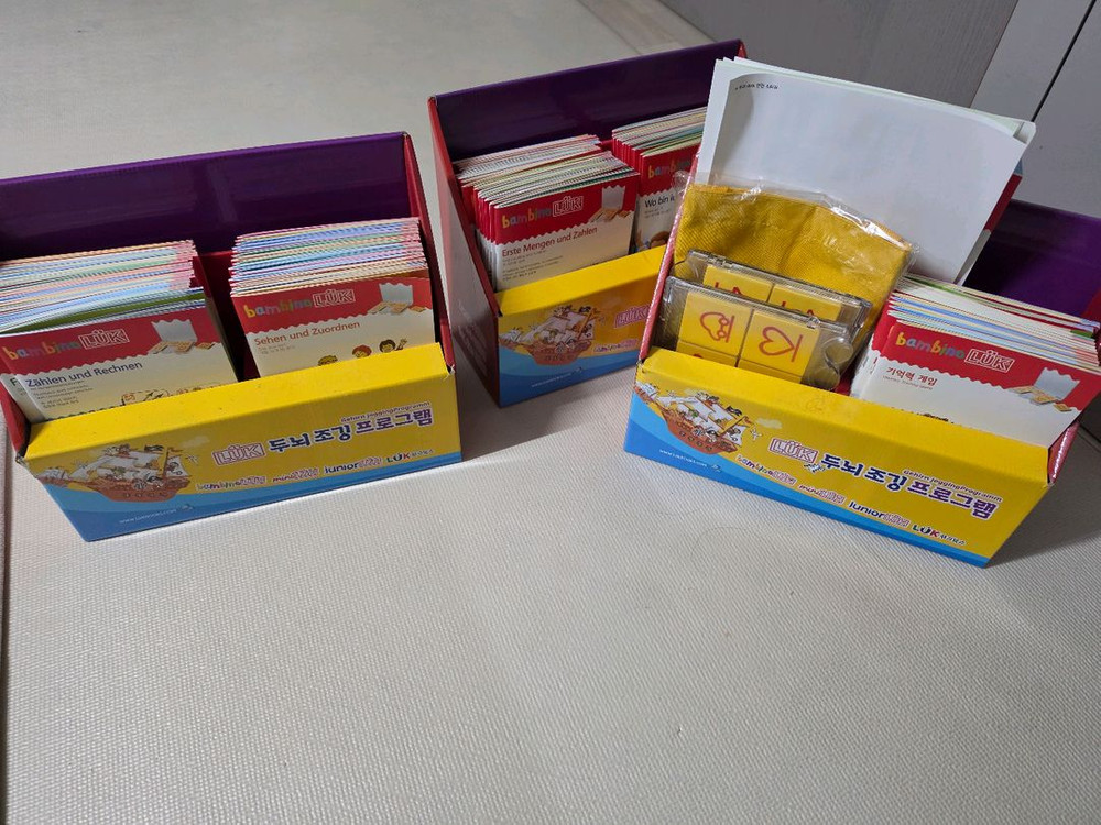 여아 한 아이 잠깐 했어요 키트2개 입니다 하나는 새거입니다 키트는 잃어버린다고 해서 하나더 따로 구매했는데 2개구성이 좋더라구요 아이 둘 있으시면 둘다 가능하니~ 책 상태는 좋습니다. 2세에서 3세 조금하다 안하네요 ㅡㅡ마지막 사진 한권 겉표지가 눌렸지만 안에 상태는 좋아요