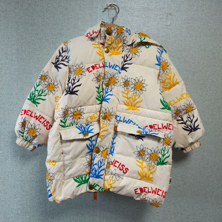 미니로디니 꽃 패딩 에델바이스 패딩 2-3Y 92-98 주머니 사이 단추위에 빨간색 이염한군데 보여서 사진 첨부했어요 소매보시면 아시겠지만 상태 양호하고 세탁도 해두었습니다 화려하고 예뻐서 입으면 더 예쁩니다 ㅠㅠ 구매 후 환불 불가