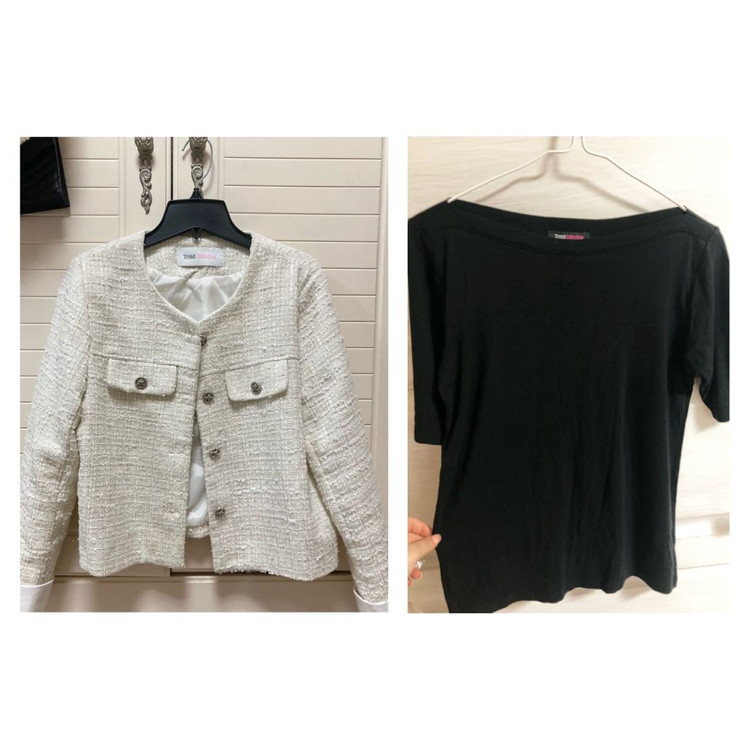❗️계좌이체 기준 금액입니다 (마지막장 참고) 중요한자리에 잠깐씩만 입은거라 전체적으로 깨끗하고 상태 아주좋습니다만 밝은옷이기도 하고 새상품 같을순없어요 예민한분은 매장 새상품 구매하시길 바랍니다 반품,환불 x [ 구매가 ] 자켓,이너 일괄 ➡️ 약 10만원 [ 판매가 ] 자켓 / 12000원 이너 / 4000원 자켓,이너 일괄 ➡️ 13000원 ㅡㅡㅡㅡㅡㅡㅡㅡㅡㅡㅡㅡㅡㅡㅡㅡㅡㅡㅡ ✔️트렌드컬렉션 아이보리 트위드 자켓 가슴 48~50 총장 52 (오차있을수있음) 2-3회 착용 이랜드 여성복 매장에서 자켓+보트넥 반팔 두개 10만원정도에 구매했어요 쌩화이트가 아니라 그레이,골드빛도 들어있어서 하객룩으로 튀지않고 적당함 쿨톤 걸쳐있는 피부톤이라 누렁하지않은 아이보리 찾느라 힘들게 찾았어요ㅎ 다른자켓들이 많아져서 내놓습니다 66기준 핏되게 피팅, 55~55반은 여유있게 맞음 큰오염,하자 없음 소매는 그냥 봤을때랑 사진에도 보이는 얼룩 없으나 화이트면이다보니 아주 미세한 얼룩은 있을수있음 ✔️ 트렌드컬렉션 블랙 보트넥 반팔 1회착용 레이온소재라 찰랑거리긴한데 3번 반팔 보다 더 탄탄한 재질이고 좀 더 핏잡힘 팔도 3번보단 쫀쫀해서 원피스,자켓 이너로 추천 뒤에 사진 1~4번 중 원하는 이너로 고르셔도 됩니다 (트위드 착샷 속 검은티는 다른옷이에요) 실측참고하시고 구매하실분만 채팅주세요 ㅡㅡㅡㅡㅡㅡㅡㅡㅡㅡㅡㅡㅡㅡㅡㅡㅡㅡㅡㅡ 세븐일레븐 반값 2000 cu 반값 2500 일반택배 4000 (cu 멀고 택배접수 눈치줘서 잘안갑니다 꼭 원하시면 최대요금으로만 접수해드려요 저렴히 이용하고싶은분들은 세븐일레븐에서 수령해주세요)