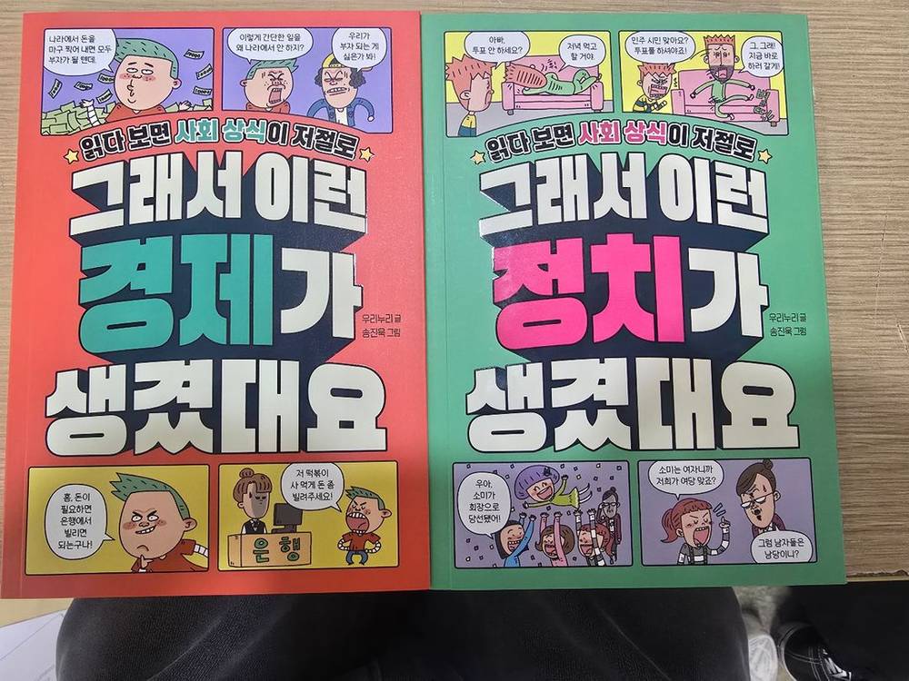 경제와 정치를 쉽고 재미있게 다룬 만화책 2권 세트예요. 책 상태는 양호하고 아이들이 경제와 정치에 관심을 가질 수 있는 좋은 도서입니다.