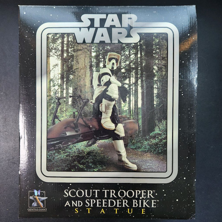 2005년도 젠틀자이언트 사에서 발매한 스타워즈 트루퍼와 스피더바이크 스태츄 입니다. 공중에 떠있는 바이크가 인상적인 스태츄 입니다. 전세계 5000개 한정생산품입니다. 신품 구매해서 장식장에 보관하다가, 다시 원래 박스에 그대로 포장해서 보관한 제품 입니다. 오래보관하다보니, 박스 옆면의 접착면이 떨어졌습니다. 원박스, 스티로폼, 포장재, 시리얼넘버카드 까지 풀박스 입니다. 오래된 제품 입니다.