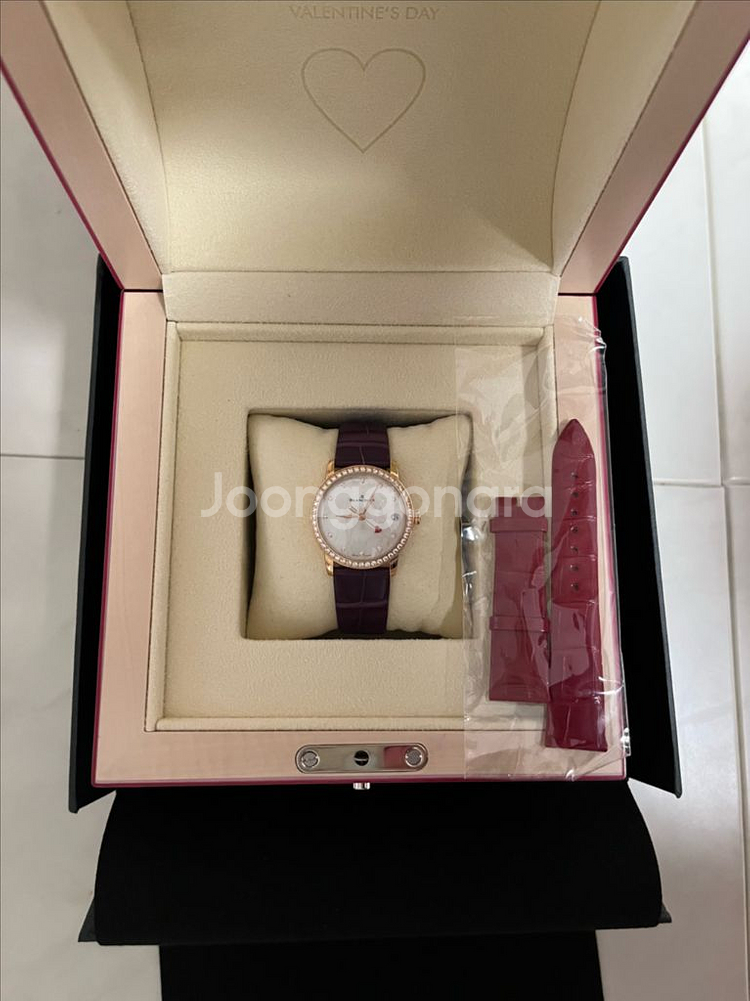 블랑팡 21년 발렌타인 에디션 판매합니다. 21년2월 국내백화점 스탬핑이며 시계가 많기도하고 쿼츠시계만 착용하다보니 몇번 착용 않해서 상태좋습니다. 구매후 풀필름 작업도해서 외관상 찍힘은 당연히 없고 눈에 띄는 스크레치도 없습니다. 전세계 28개 한정판으로 국내에 1-2점 입고 된걸로 알고있습니다. 뒷백 공장필름도 그대로 붙어있고 기타부분은 필름 작업후 몇번착용 안해서 상태 좋습니다. 현재 정품 퍼플 밴들로 체결중이며 제치밴드는 새상품 입니다. 구매시 받은 보증서, 영수증, 쇼핑백 전부 보관중입니다. 중중고 아니고 1차구매자 입니다. 안심결제로 카드결제도 가능합니다. 직거래만 가능하고 남양주시 호평동이나 시간맞으면 잠실에서도 가능합니다.