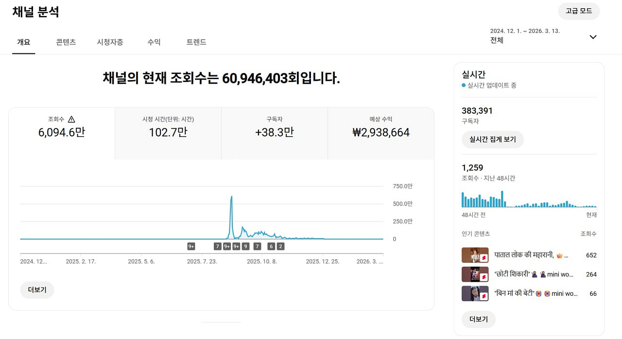 38만명 수익 활성화 쿠파스 유튜브 채널