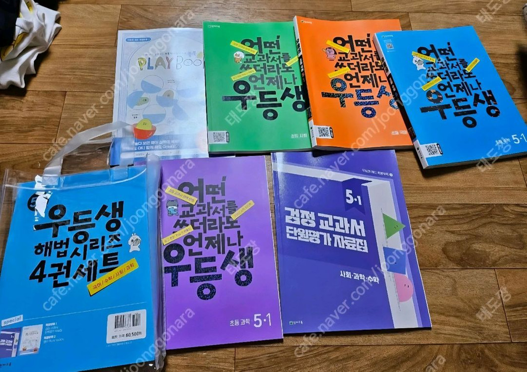천재교육 우등생 해법시리즈 5-1 전과목 세트 - 우등생 해법시리즈는 초등 5학년 1학기 국어, 사회, 과학, 수학 과목으로 구성 - 검정 교과서 단원평가 자료집과 온라인 학습북이 포함되어 학습에 도움 - 문제풀이 영상도 볼 수 있어 홈스쿨링으로 넘 좋아요. 모두 새책 택포3만원 빠른 배송과 송장사진드려요