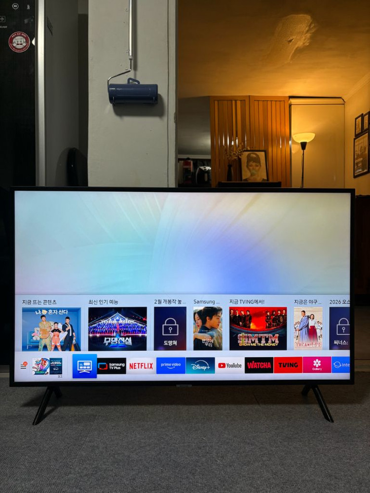1. 제품명 : 삼성 4K 43인치 스마트TV 2. 가 격 : 30만 3. 설 명 : 4K라 화질은 두말할것도 없고 스마트TV여서 유튜브, 넷플릭스 등 왠만한 ott기능 다 됩니다 구성품 : TV, 다리거치대, 리모콘 직거래 : 인천