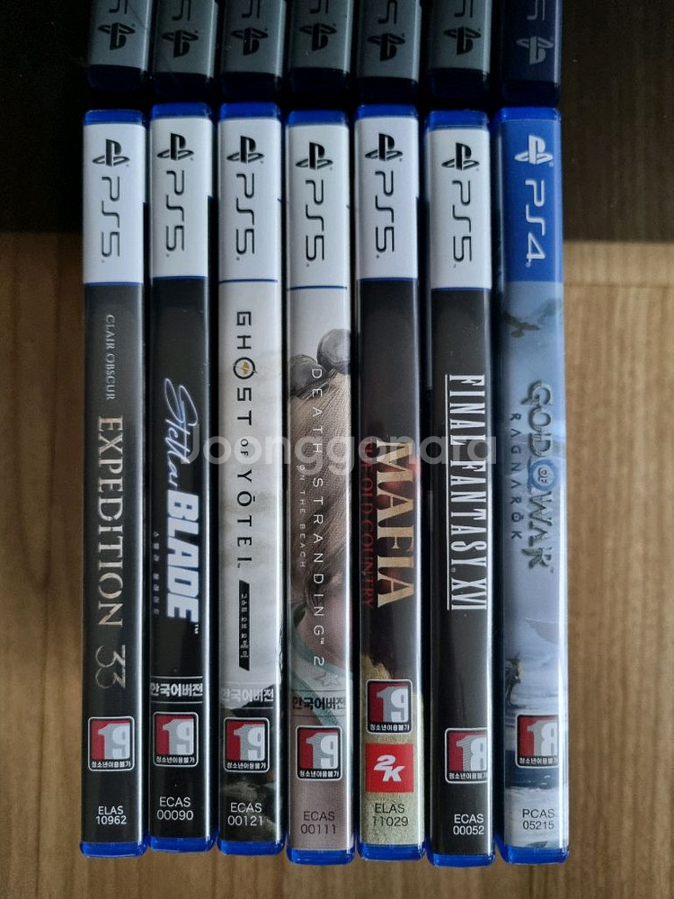 PS5 게임 타이틀 정리합니다. 모두 정품 패키지 / 상태 좋습니다. 디스크 기스 없고 정상 플레이 확인했습니다. ■판매 목록 Clair Obscur: Expedition 33 (PS5) – 50,000원 Stellar Blade (PS5) – 50,000원 Ghost of Yōtei (PS5) – 45,000원 Death Stranding 2 (PS5) – 45,000원 Mafia: The Old Country (PS5) – 35,000원 Final Fantasy XVI (PS5) – 30,000원 God of War Ragnarök (PS4 / PS5 업그레이드 가능) – 20,000원 ✔ 일괄 구매 시 230,000원(택배비 무료) ■거래 방법 직거래: 화성시 동탄(투썸플레이스치동천체육공원점) 택배 거래 가능 (개별 구입시 +4,000원) 문의는 채팅 주세요.