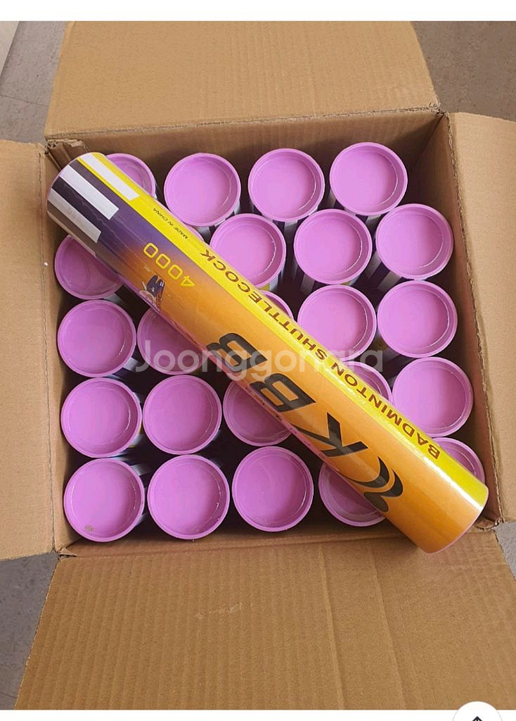 배드민턴용 셔틀콕 4000개입니다. 박스에 깔끔하게 정리되어 있고 상태 양호해 보여요. 배드민턴 치시는 분들께 좋을 것 같습니다!