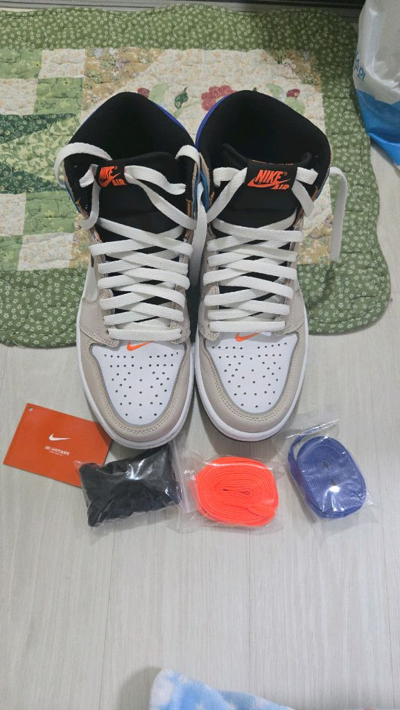 중고제품입니다 사진참고요 나코택 정품제품입니다 정가 19만9천원 박스는없습니다 여분끈 포함입니다 나이키 에어 조던1 하이 OG 프로토타입 255mm 판매합니다 us7.5 운동화
