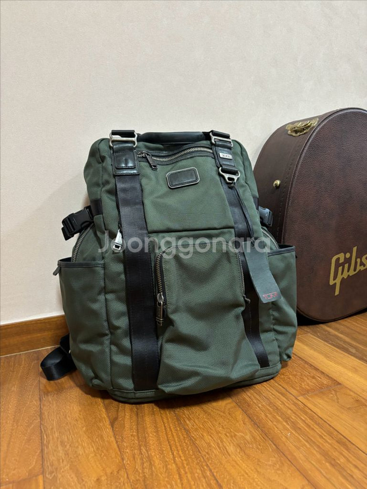 투미 르준, 펼쳤을 때 높이 50cm정도는 거뜬히 넘어가는 대용량 백팩입니다. 보시다시피 가죽 상태도 매우 우수하고 전체적인 가죽 상태도 흠잡을 곳 없습니다. 출퇴근 수납은 물론 2박3일 출장 짐 정도는 캐리어 안끌어도 거뜬한 사이즈입니다. (남성분 한정) 정품 투미 트레이서는 구매 후 등록하셔서 사용하시면 됩니다. 남자다운 색상인 올리브 카키입니다.