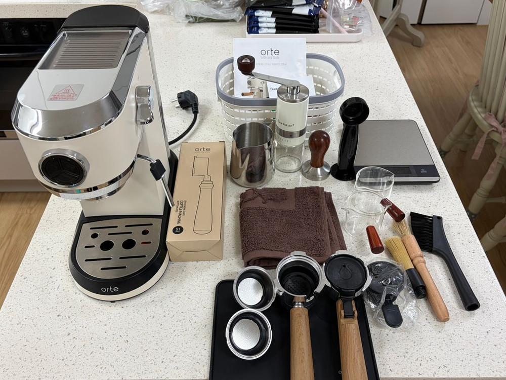 오르테 커피머신 풀세트 판매합니다! (수동 그라인더, 샷잔 등 각 종 액세서리 포함) 총 30-35만원 정도로 구매했고, 실사용은 1번입니다! 다만 박스는 버려서 다른 곳에 담아드리려구 합니다ㅜㅜ 수동 그라인더로 원두를 갈아서 커피를 내릴 수도 있고, 캡슐커피로도 내려 마실 수도 있습니당! (돌체구스토, 네스프레소, 파드커피 등) 스팀도 가능하고, 컵워머기능도 있어요~ 내부세척도 해서 드리고, 나머지 액세서리도 다 세척해서 드려용! 전자거울과 하얀 바구니는 다이소에서 구매한건데, 필요하시면 같이 드려용~~ 집에서 홈카페 즐기고 싶으신 분들에게 추천드려용☺️ 편하게 문의 주세요!