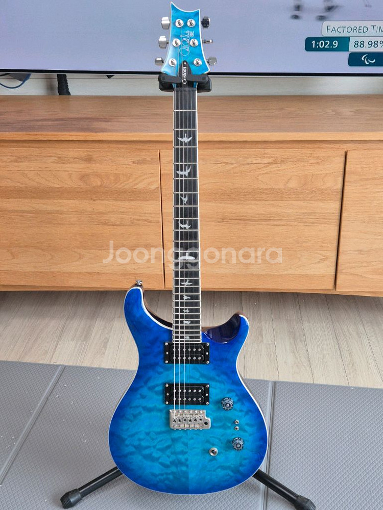 PRS SE 2025 Model Custom 24-08 Quilt-Lake Blue w/Ebony FB Matching Headstock & Binding 25년 1월에 구입 하였습니다 전체 사용기간은 24시간이 안될겁니다 ㅜㅜ 하여 완전 신품스러운 상태입니다 구매시 받음 스트링 3셋 등... 보증서도 같이.드립니다 보호필름 붙여서 애지중지 관라히였습니다 사진의 실선들은 필름이예요!! 연락주시면 상세사진 더 드릴게요!! 박스도 보관중이라 택배도 가능합니다 믾은 연락 바랍니다!!