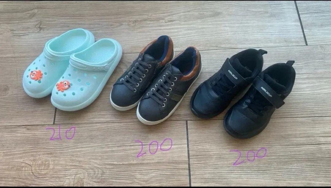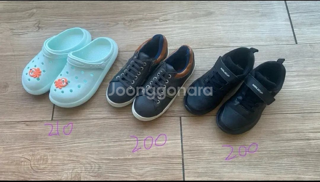 200 사이즈 3개묶음 ( 3개일괄 ₩2.4 쿨거래) 개당 ₩8천원꼴 1. 210 민트 샌들 새것! (진짜 폭신폭신하고.👍 실내화로 신으면 층간소음 완전 도움되요!~~ ) 2. 200 카키 단화 새것 .지퍼잇어서 신고벗기 편해요~ 3. 200 블랙 운동화 몇번 안신어서 상태좋음~