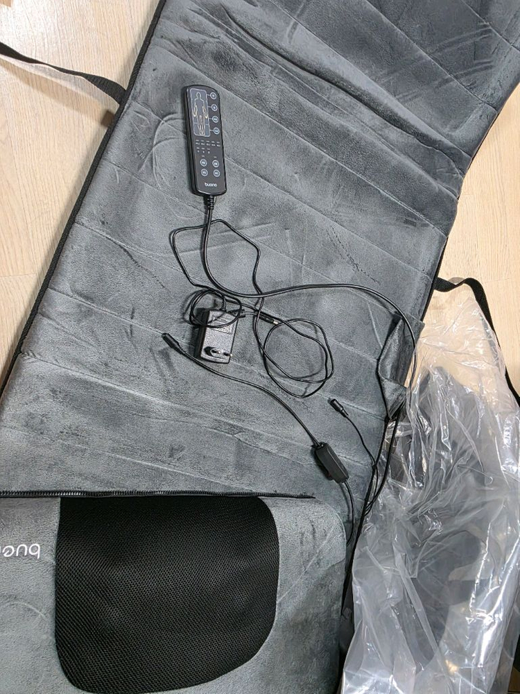 부에노 전신 마사지 매트입니다 온열 기능과 진동 기능으로 몸을 편안하게 마사지할 수 있습니다 리모컨이 있어서 편리하게 조작할 수 있습니다 - 전신을 시원하게 마사지 받을 수 있습니다 - 휴대와 보관이 용이합니다 1ㅡ2회 사용 후 보관중입니다 거의 새것과 마찬가지입니다 구성품 다 있습니다 네고 안되요 대신 배송비는 제가 책임지겠습니다 직접 오실시 에누리해서 37000원에 판매합니다
