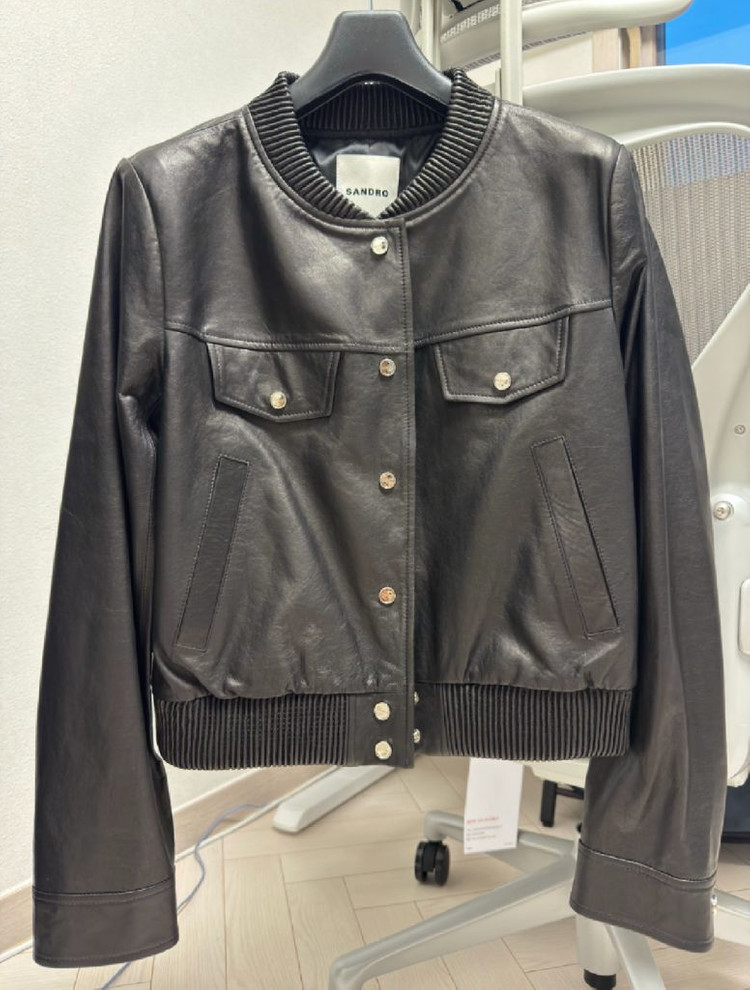 산드로 양가죽 봄버 자켓 - 블랙 아이디룩몰 구매 43 사이즈 밴딩처리된 네크라인과 밑단이 매력적인 가죽 자켓입니다. 최근에 디자인 살짝 바뀌어서 (버튼->지퍼) 다시 나오는 것 같더라구요. 집에서 시착만 한 제품이고, 거의 새상품입니다. 제가 입기에는 살짝 작은 듯하여 내놓습니다. 정 55사이즈 혹은 마른 55 사이즈인 분들이 입으면 딱 예쁠 것 같아요. (오버핏은 아니고 기본핏입니다) 양가죽이라 부드럽고 고급집니다. 세번째 사진부터 있는 제품 설명 캡처 사진은 카키색인데, 제가 올린 제품 색상은 블랙입니다. 상세 사이즈는 캡처 사진 확인해주세요. 광교에서 직거래 가능하고 택배거래도 가능합니다.