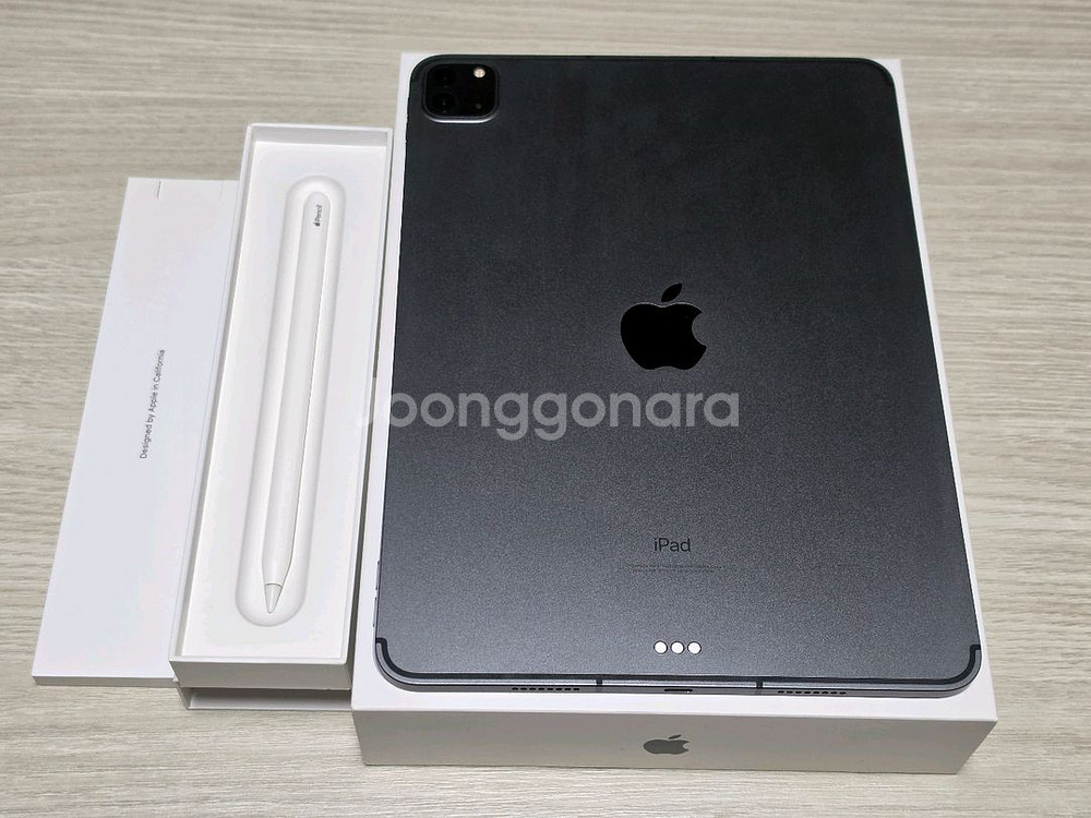 후면아이패드 프로 11형 3세대 Wi-Fi + Cellular - 스페이스 그레이 - 512GB 저장 용량 - 배터리 성능 88% - 정품 케이스 포함 - Apple Pencil 2세대 포함 *케이블은 없습니다!