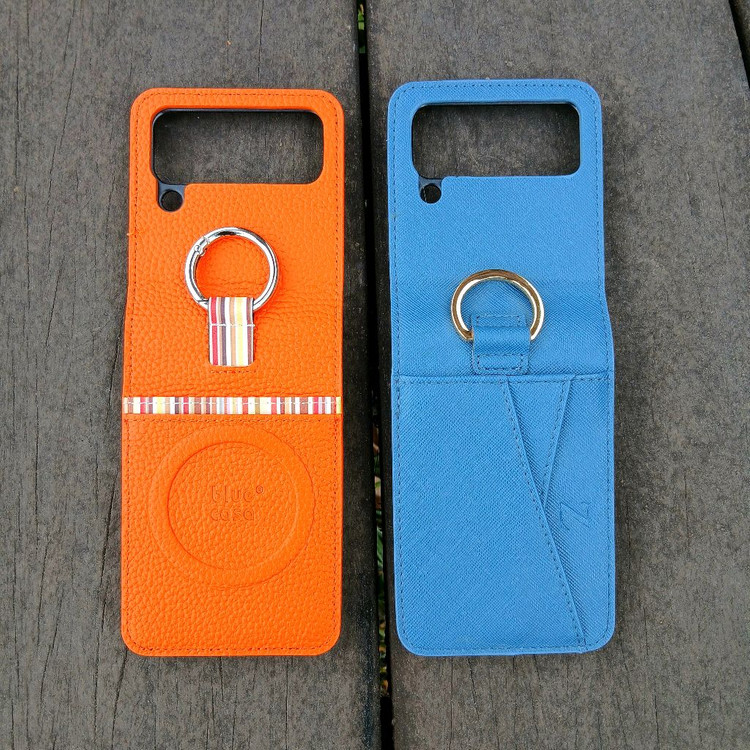 - 갤럭시 Z 플립4 스마트폰용 오렌지와 블루 케이스 2개 일괄입니다 - 고리가 달려 있어서 편리하게 사용할 수 있습니다 - 주문 실수로 포장만 오픈하고 사용하지 않은 상품입니다 - 오렌지색은 블루까사 맥세이프 천연가죽 케이스이고 파란색 케이스는 유명 상표인데 포장 박스를 버려서 잘 모르겠습니다