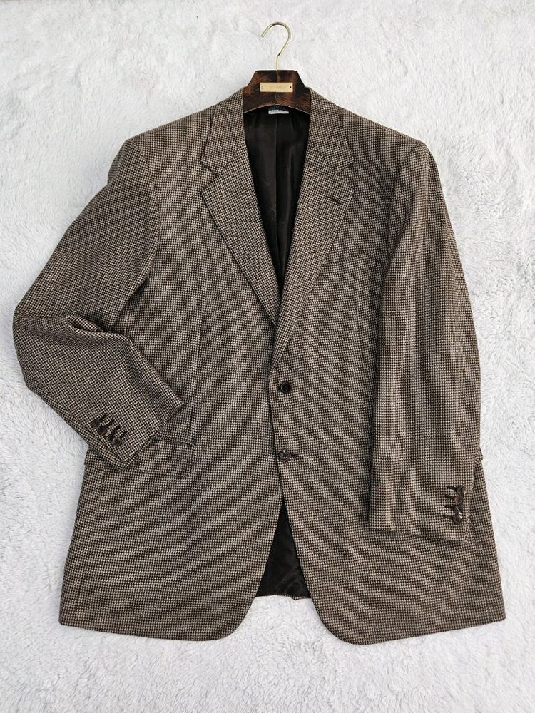 브리오니 퓨어 캐시미어 블레이저입니다. 조직이 또렷하게 살아 있는 하운드투스 패턴 위에 베이지와 브라운이 교차되며 깊이감이 만들어져 가까이서 볼수록 단순한 하운드 투스체크가 아니라 캐시미어 특유의 입체적인 결이 먼저 느껴지는 모델입니다. 100% CASHMERE 단일 소재라 블렌드 제품에서 오는 거친 느낌이 전혀 없고 두께감이 있는 원단임에도 무게는 과하지 않아 겨울에는 코트 안 이너로 활용하기 좋고 초겨울에는 단독으로 걸쳐도 충분히 보온성이 확보됩니다. 일반적인 간절기용 얇은 캐시미어 블레이저와는 원단 단가 자체가 다르기 때문에 리테일가에서도 확실히 차이가 나는 타입이며 실제로 두께감 있는 퓨어 캐시미어 모델은 브랜드 내에서도 상위 가격대로 형성되는 라인입니다. 브리오니 특유의 균형 잡힌 클래식 실루엣을 기반으로 깔끔히 정리되고 허리 라인은 자연스럽게 들어가 맞춤처럼 떨어져 니트 위에 걸치면 부드러운 무드로 연출되고 셔츠와 타이를 매치하면 좋습니다 사이즈 56R 어깨 53 가슴단면 65 팔기장 64 총장 81 문의주세요