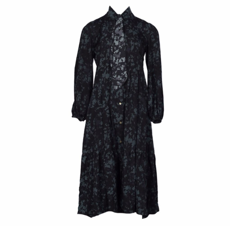 우아한 색감의 딥그린+블랙 패턴 롱드레스 목부분 끈 있어 리본 또는 스카프 두른것처럼 코디 가능 찰랑이는 좋은 원단이 입네다 :) 손목 고무줄 짱짱하고 밑단프릴 이쁘고 우아함 단추 골드색감이고 가슴부분 똑딱이 있어 벌어짐 방지 밑단 단추 안잠그고 풀면 앞트임 원피스 됨 표기는 44인데 55~55반도 가능 넉넉함 어깨 33 가슴 46 총장 116