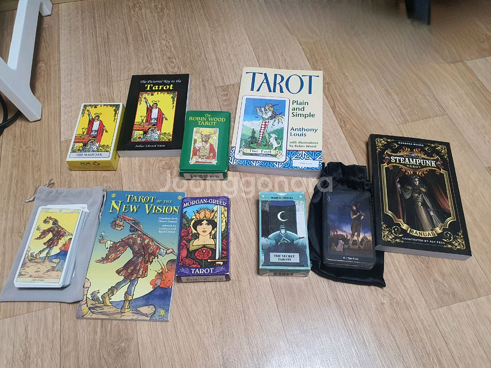 기초 입문용으로 널리 쓰이는 라이더웨이트 타로카드 포함, 인기 기종 6종류 타로카드 북세트 일괄 팝니다 시중 대형서점들 가보면 있는 기초 자료로 널리쓰이는 카드입니다 1 라이더웨이트 (북셋) 2 로빈우드(북셋) 3 모건그리어 4 뉴비전(북셋) 5 스팀펑크(북셋) ㅡ 카드 미개봉 6 시크릿 구성은 타로카드 6종 영문 설명서 포함돼고, 타로 보관주머니 두개 챙겨드립니다 북셋 표시된건 북세트 포함돼고, 기본 영문 설명서 동봉됩니다(한글 해설서는 없습니다) 기본 입문용으로 공부하는 분들이 참고해서 많이 공부하는 인기 종류들이고, 실사용 적어 보관한 제품이라 깨끗합니다. 서울 4호선 한성대입구역 부근 직거래 가능합니다 구성상품 무게가 있어, 택배거래시 만원 추가됩니다 문의사항은 톡으로 남겨주세요