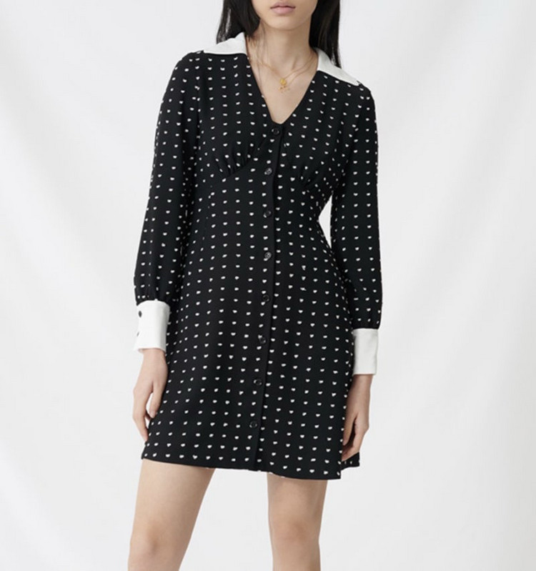 마쥬 폴카 도트 미니 원피스 36사이즈입니다. 블랙 색상에 화이트 도트 무늬가 들어가 있는 귀여운 디자인입니다. 반택 2500 일택 4000 *교환 환불 불가합니다.
