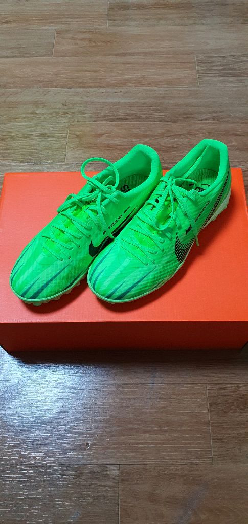 *필독* 📌몇몇 비매너 분들로 인해 모든제품 예약불가(×) 원하시면 안전결제후 예약으로 변경해드립니다. 📌비매너, 가격제시 에눌문자 답 생략 칼차단 합니다. 📌교환 환불 반품 (×) 불가하오니 신중구매 요망! 📌모든제품 평일(조율) 우체국 이용.(반값택배 ×) 게시글 끝가지 읽고 인연 소중히 여기시는분들 연락주시면 성의껏 포장해서 부쳐드리겠습니다. ~~~~~~~~~~~~~~~~~~~~~~~~~ * 예약 안받습니다 * 나이키 줌 머큐리얼 베이퍼15 아카데미 no : FJ 7191 -300 235 인데 작게 나왔습니다. (220-225체크) 바닥사이즈 체크하셔서 연락주세요 . 발볼 좁습니다. 사이즈 업 하게되면 좀 낄수도 있으니 슬림한분 권장드립니다. 사용감 약간, 특별한 데미지 없으며 나름 괜찮은 상태로 보관중이니 체크하셔서 구매할분만 연락받겠습니다. 예민한분 자제요망,소모성문의 답생략 합니다. 나이키 머큐리얼 풋살.... 택포2.5만 (신발단품)