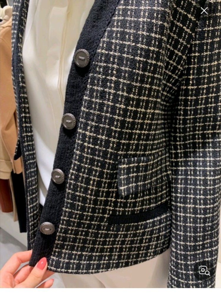 트위드 재킷 입니다. 새상품 수준으로 상태 매우 좋습니다 블랙 55사이즈 앞으로 가볍게 입기 좋습니다. 으픈 스타일. 총장 53cm.