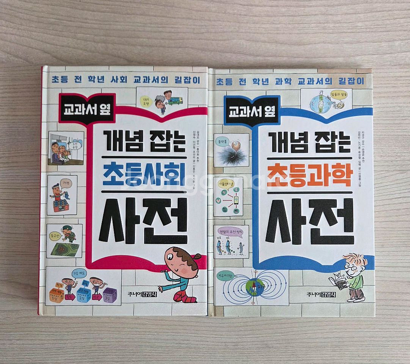 주니어김영사 '개념 잡는 초등사회 사전'과 '개념 잡는 초등과학 사전' 두 권 세트입니다 초등 전 학년 사회, 과학 교과서의 길잡이 역할을 해주는 책이에요 개념을 쉽고 재미있게 설명해 주어 초등학생들이 사회와 과학 개념을 잡는 데 큰 도움이 됩니다 사용감 적어 상태가 아주 좋습니다. (정가 한권에 22000원씩이에요)