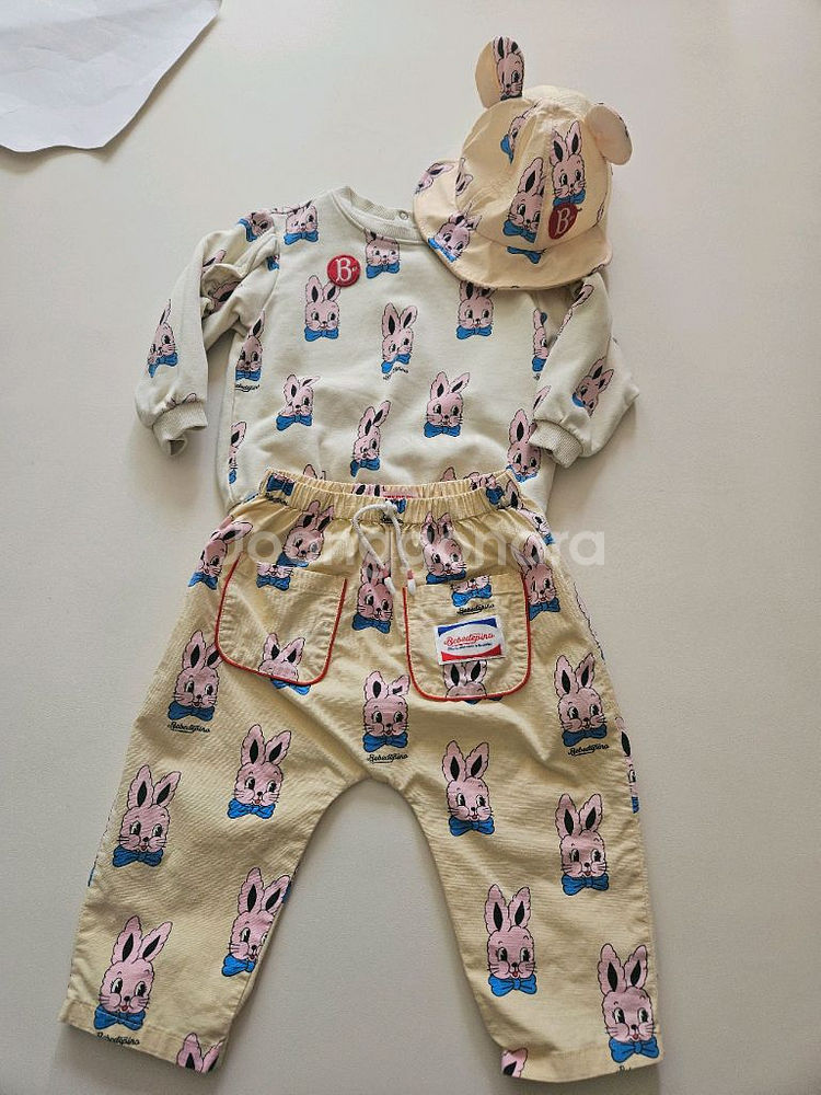 티셔츠100,바지100사이즈입니다 티셔츠는 세탁감 있지만 깨끗히 입혔고 바지는 사서 2번 입혀 상태 좋아요 모자는 상태 괜찮으나 할머니가 모자 안쪽에 이름을 실로 꼬맸어요 쓰면 안보이나 예민맘은 피해주세요 그래서 세트로 싸게 판매합니다 반값택포입니다