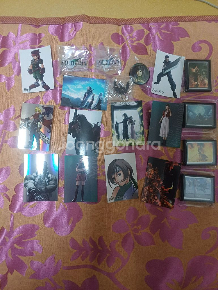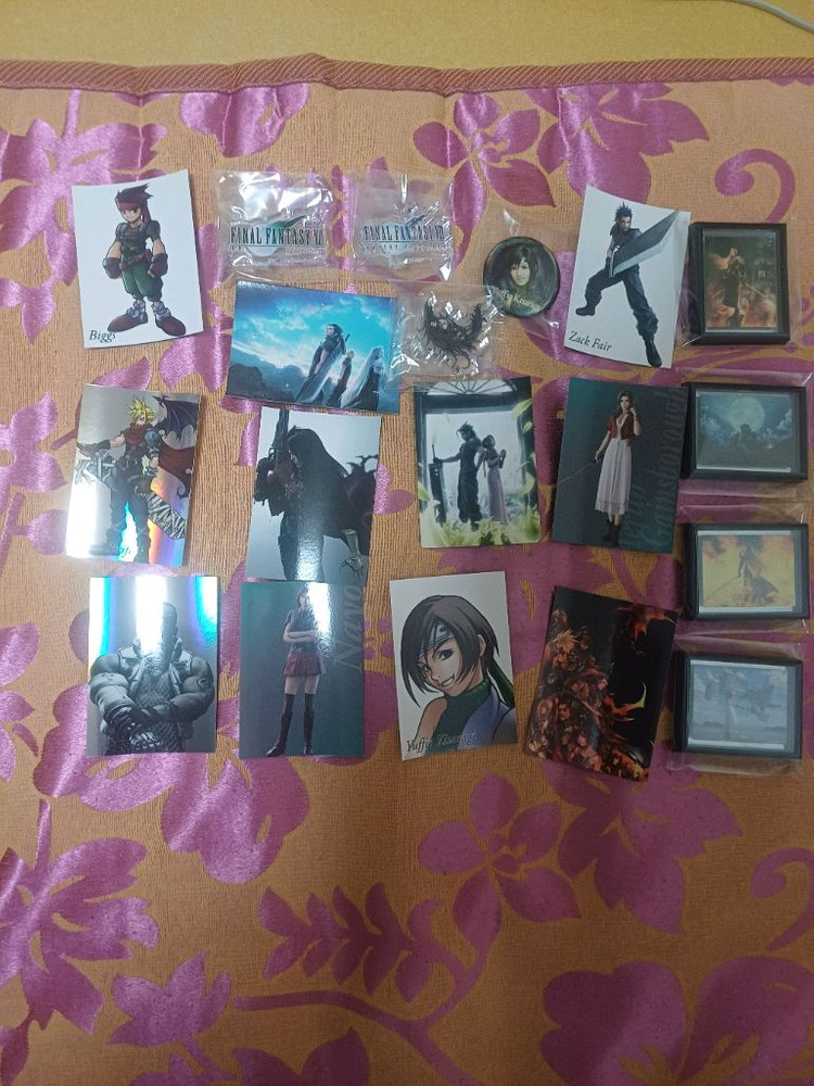 파이널 판타지 VII 관련 굿즈 일괄 판매합니다 - 카드, 뱃지, 아크릴 스탠드 등 다양하게 구성되어 있습니다 - 캐릭터 카드 (클라우드, 에어리스, 잭 페어 등) - 유피 뱃지 - 아크릴 스탠드 포함 계좌만 받습니다