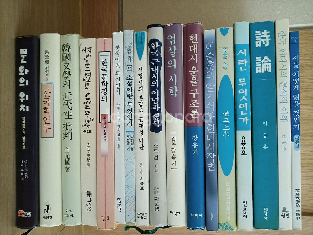 1. 문화의 위치 ㅣ호미 바바 지음 ㅣ소명출판 1만원 ㅣ 책상태 B급 l 공부흔적 없음 그 외 문학 관련 도서 판매합니다 문학비평의 이해와 활용 ㅣ이명재•오창은 ㅣ경진 ㅣ9,000원 한국학 연구 ㅣ조지훈 ㅣ나남출판 ㅣ1만원 한국문학 강의 ㅣ조동일 외 공저 ㅣ길벗 ㅣ7,000원 한국문학의 근대성 비판 ㅣ김윤식 ㅣ문예출판사ㅣ1만원 문학이란 무엇인가 ㅣ장 폴 사르트르 ㅣ문예출판사ㅣ2,000원 2. 시란 무엇인가? 시학•시론•현대시작법 외 시란 어떻게 읽을 것인가 시론 ㅣ이승훈 이승훈의 알기쉬운 현대시작법 현대시론 ㅣ김영철 현대시 운율 구조론 ㅣ강홍기 한국 현대시의 분석적 이해 시란 무엇인가ㅣ유종호 서정시의 본질과 근대성 비판 한국 근대시의 이념과 형식 엄살의 시학 ㅣ임보 강홍기 10권 • 일괄 3만원 직거래 청주시 우선 그 외 지역 택배 가능합니다 타지역 배송은 문자 메세지 로만 연락 부탁드립니다 연락처 010) 사사52 14팔오