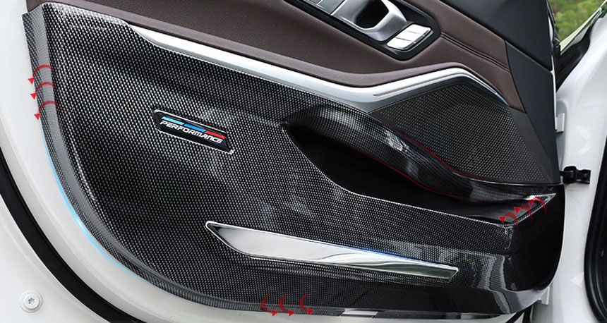 BMW 도어킥커버 몰딩 G20 3시리즈 - 129,500 G30 5시리즈 - 153,500 G32 6GT - 191,500 G01 G02 G08 X3 X4 IX3 - 129,500 G05 X5 - 239,500 G06 X6 - 287,000 G07 X7 - 239,500 뒷면 3M 접착면에 열을 가해 부착 ABS 소재로 강도높은 내구성 미사용 신품입니다.